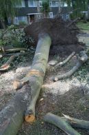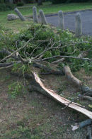 There was significant structural damage with some roofs destroyed and chimneys damaged as well as a large tree being ripped from the ground and a bus shelter destroyed.