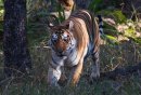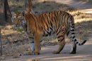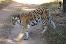 On only our second safari we witnessed the dominant female of Pench N.P as she came from the undergrowth to cross the road directly in front of our vehicle.